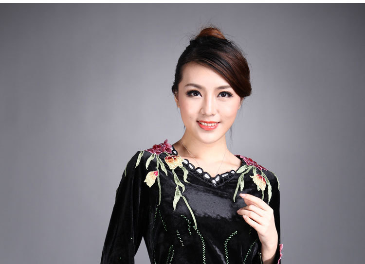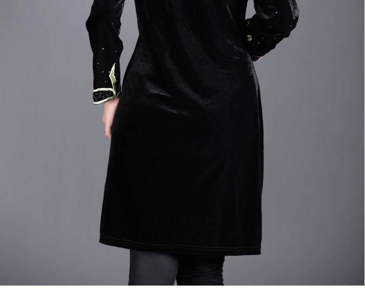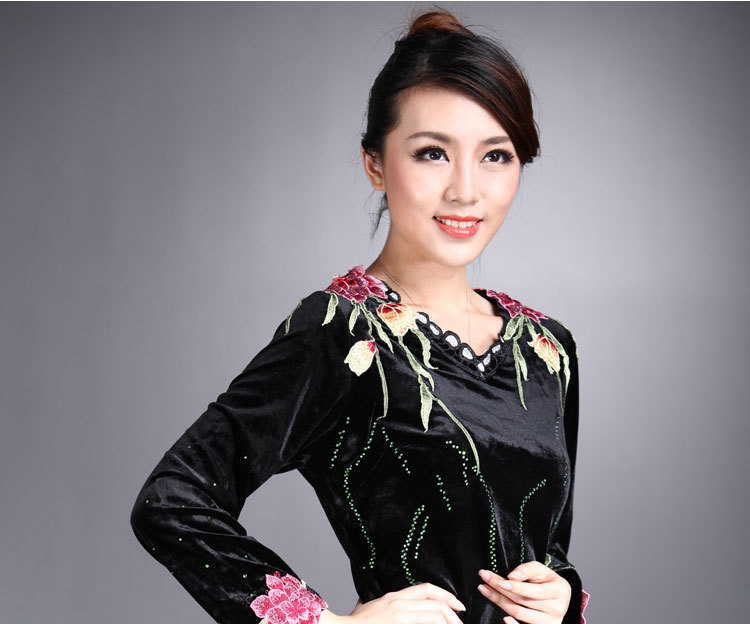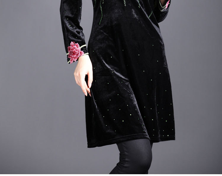5199#秋冬季韩版加厚刺绣花长袖时尚金丝绒大码连衣裙 批发代理