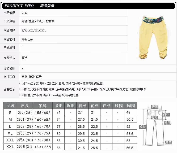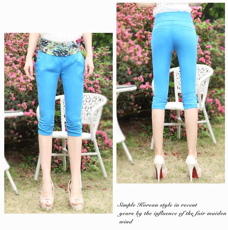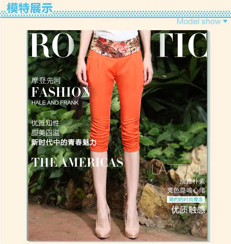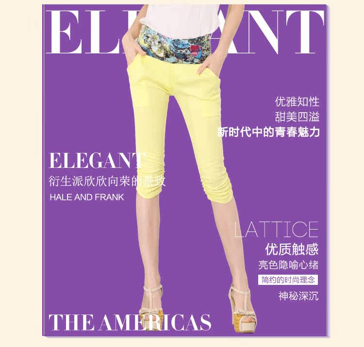 2013夏季新款女裤 拼接七分裤女夏显瘦韩版修身七分裤 0113