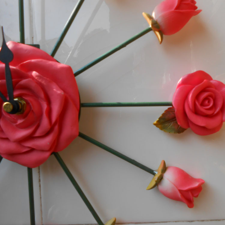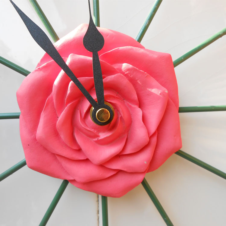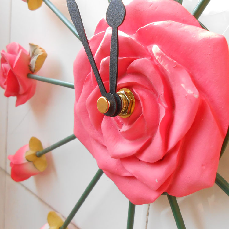 创意时尚 树脂挂钟 玫瑰花铁件钟 粉红色
