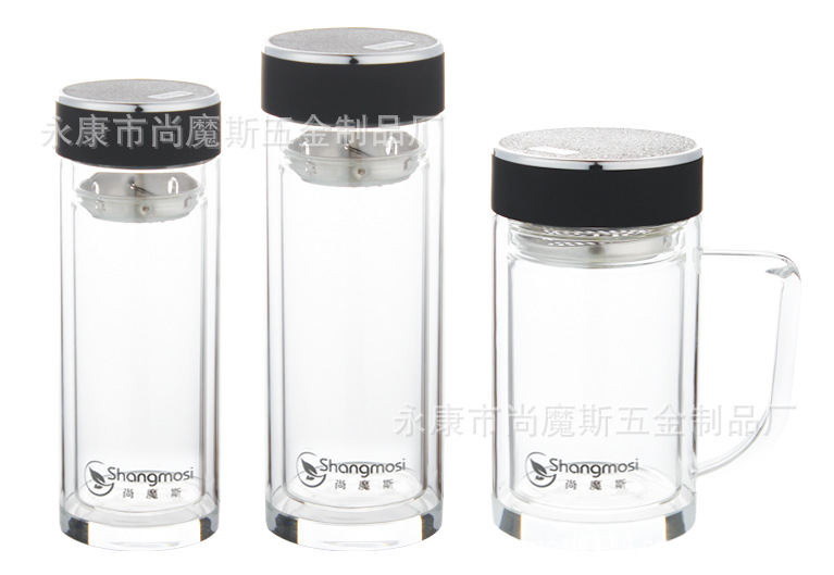 双层耐高温黑水晶底玻璃办公口杯 真空双层玻璃杯 广告礼品促销杯