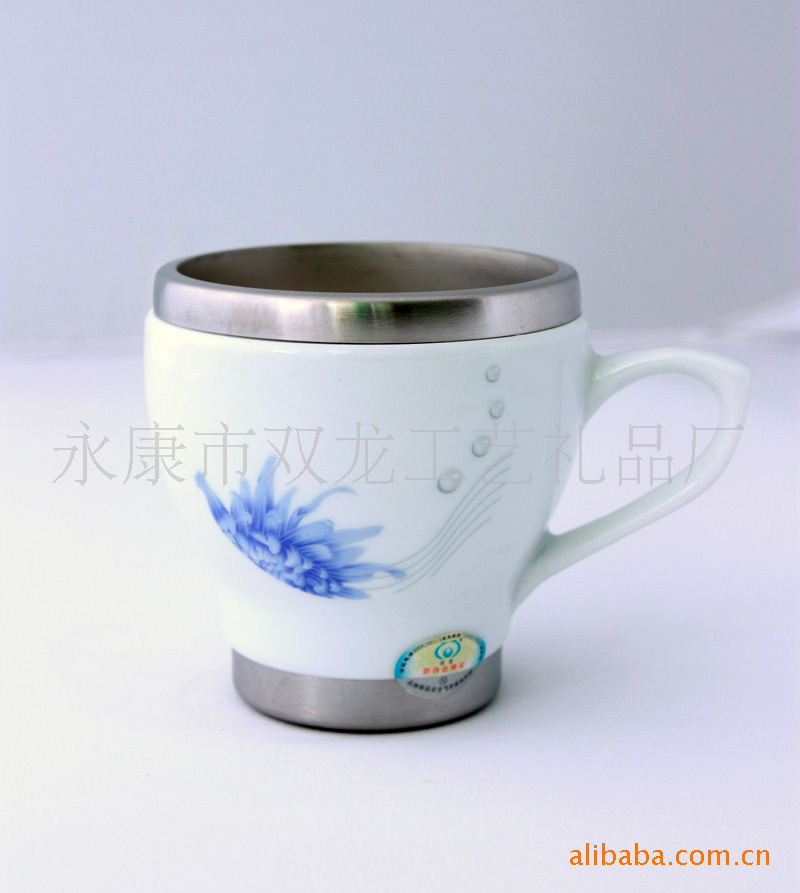 厂家供应 SL-2813 300ml 不锈钢陶瓷杯,陶瓷咖啡杯