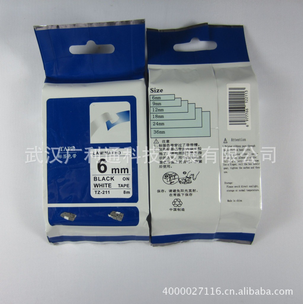6MM兄弟标签纸国产三代 PT-18RZ标签机专用 白底黑字
