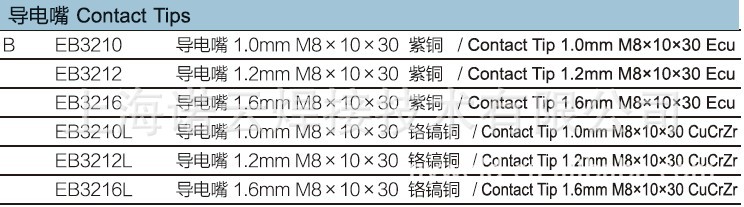 济南诺斯NW501焊枪紫铜导电嘴/铬锆铜导电嘴M8*10*30