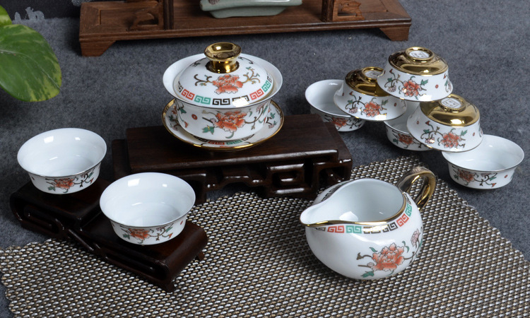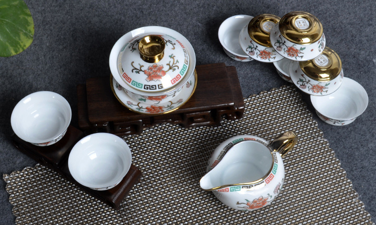 三瑞良瓷 厂家直销 牡丹彩镀陶瓷茶具 新款畅销电镀功夫茶具