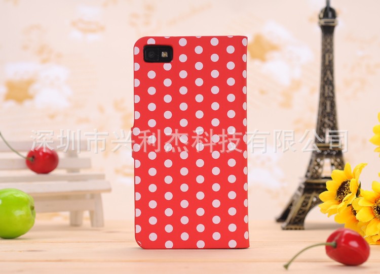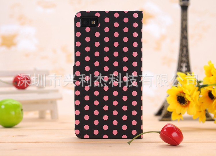 BlackBerry/黑莓 Z10波点皮套 左右开 可支架BB10手机保护套