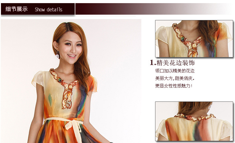 2540韩版原单2013夏装蕾丝连衣裙 V领网纱袖雪纺大码女装广州销售