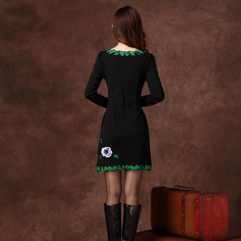 夜店女装 春夏秋装欧美性感包臀竹叶领长袖加大码连衣裙洋装2015