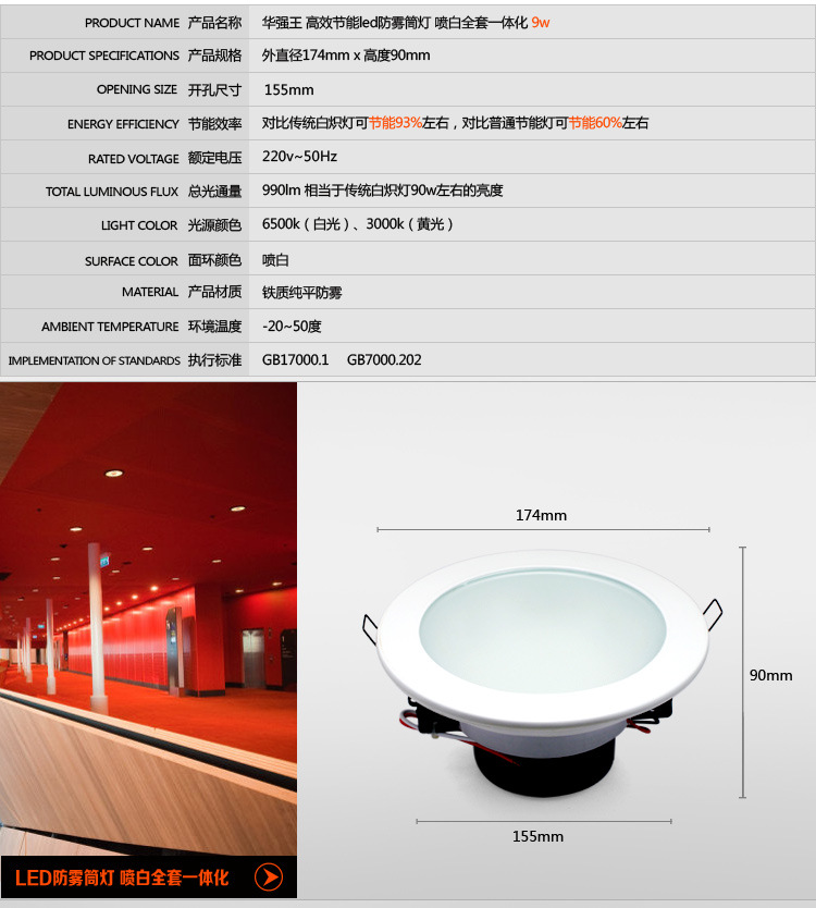 一体化应急筒灯苏州振辉应急灯振辉照明LED筒灯