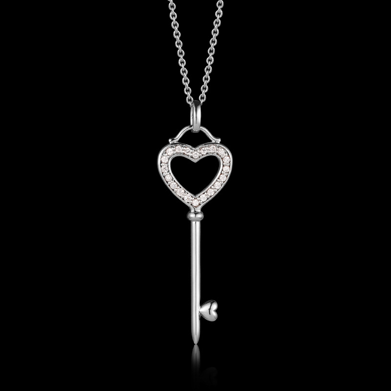 zenme 甄美首饰 925纯银心形钥匙吊坠 代加工 韩版时尚吊坠