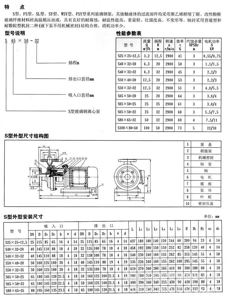 厂家直销 S型直联玻璃钢离心泵