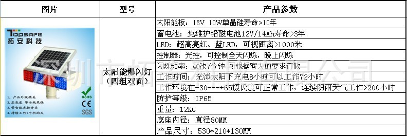 深圳拓安四组双面太阳能爆闪灯 高速路口专用警示灯 智能光控开关