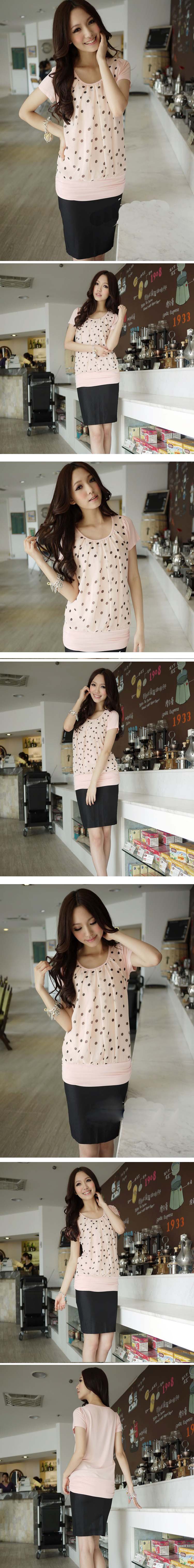 2013夏装新款 韩版大码女装 拼接雪纺波点短袖t恤