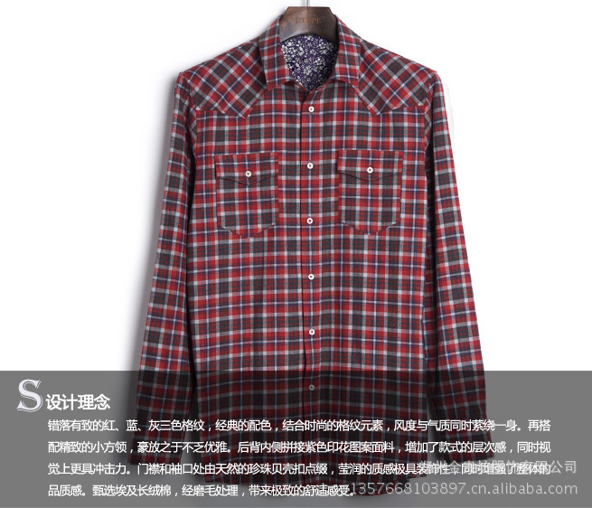纯棉磨毛长袖衬衫 时尚高档衬衫 男式衬衫 可定制