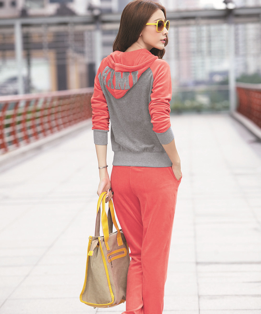 2012鸿星米兰时尚休闲运动拼接天鹅绒秋季韩版女装开衫拉链外套装