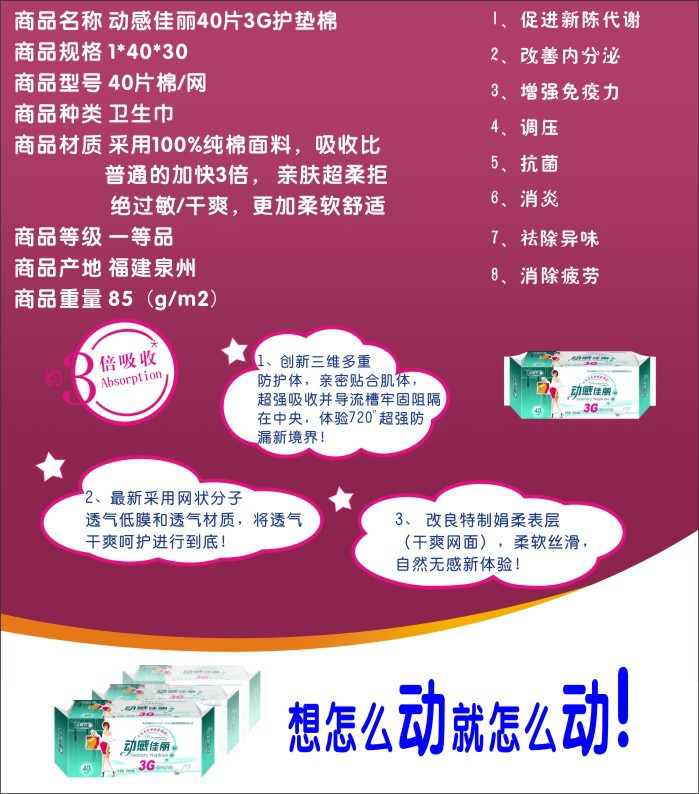 金小莉负离子夜用卫生巾厂家直销、支持OEM加工定制
