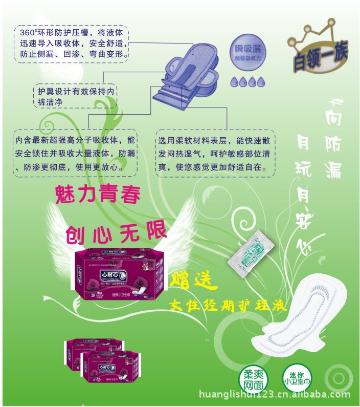 厂家直销 心耐心卫生巾 2218网 带护翼小卫生巾内赠护理液一包
