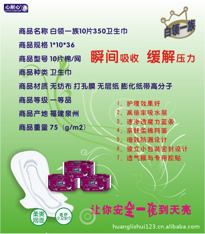 金小莉负离子夜用卫生巾厂家直销、支持OEM加工定制