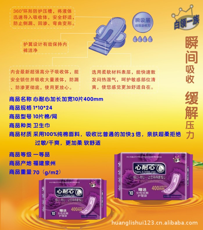 金小莉负离子夜用卫生巾厂家直销、支持OEM加工定制