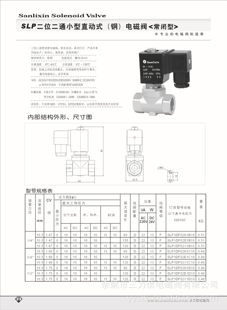 SLP二位二通小型直动式(铜)电磁阀 常闭型