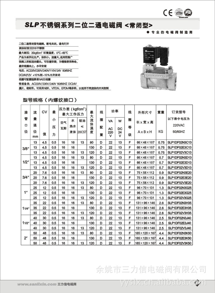 SLP不锈钢系列二位二通电磁阀 常闭型