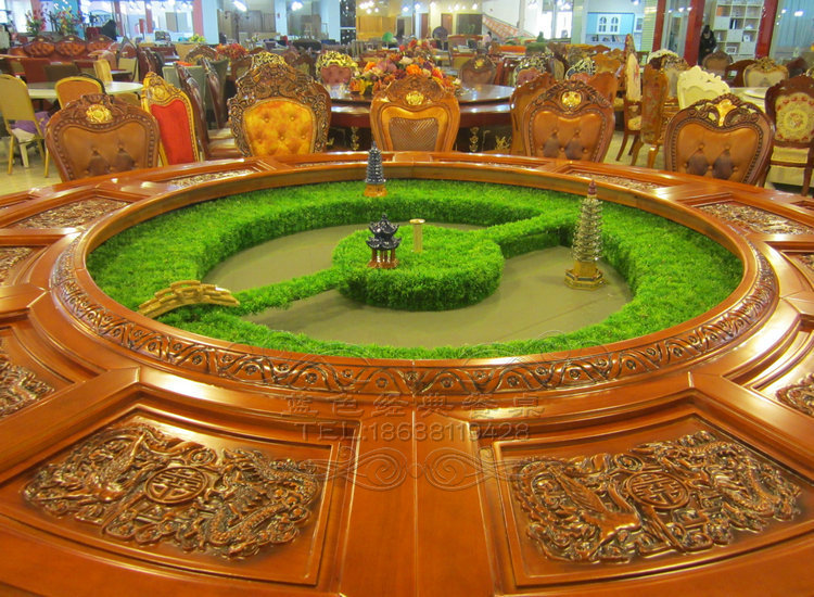 厂家直销 酒店电动餐桌 酒店餐桌 大圆桌 树脂雕刻 仿古 KYZ-181