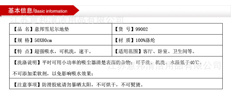 意邦雪尼尔地垫 家居地垫 除尘垫50*80cm 99002