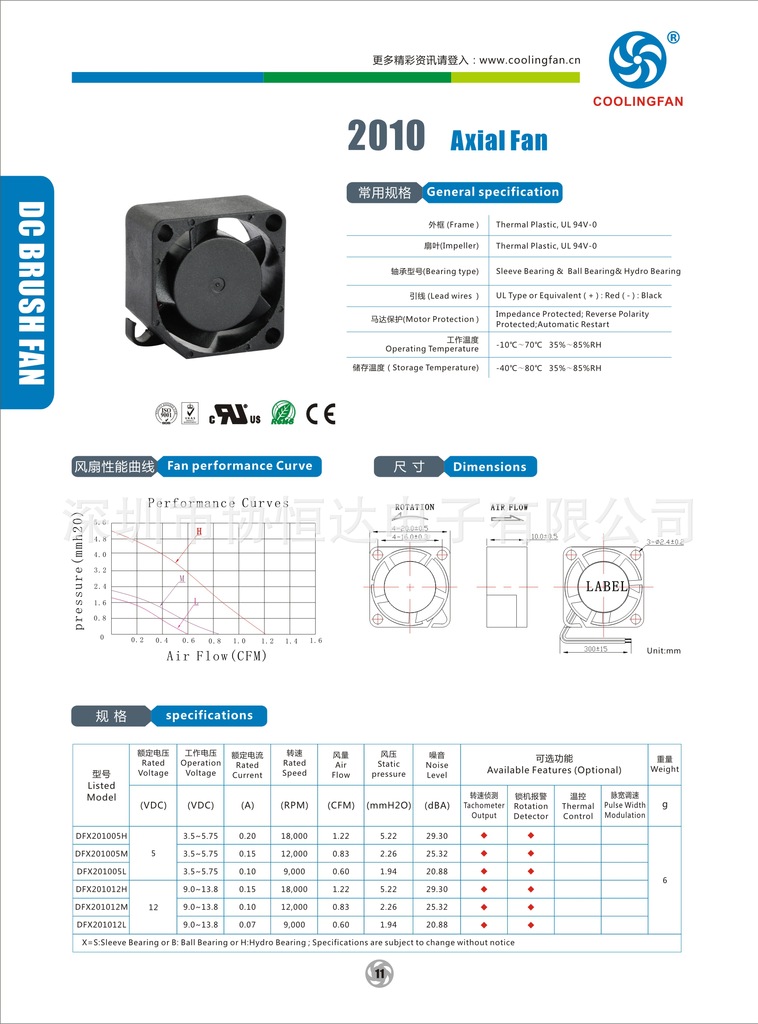 散热风扇 DFB201012H 2010 5V-48V 静音风扇 长寿命