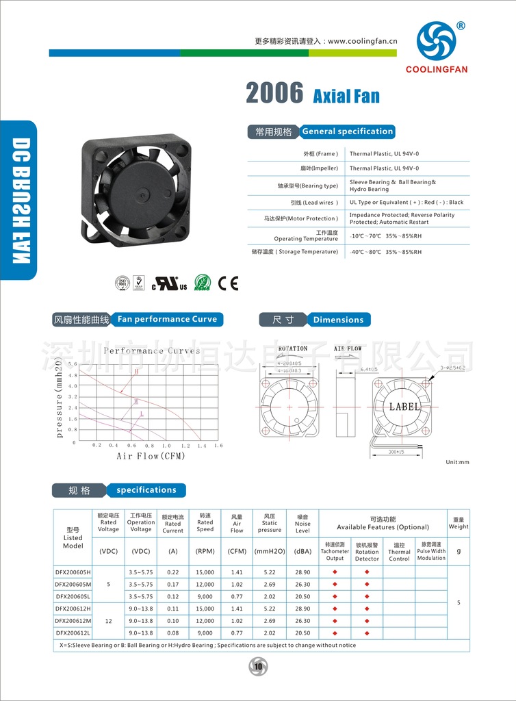 散热风扇 DFB200612H 2006 5V-48V