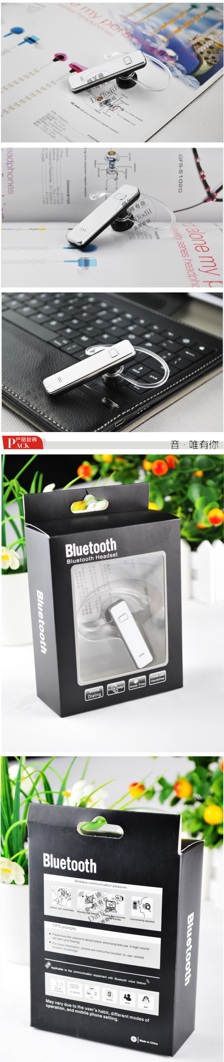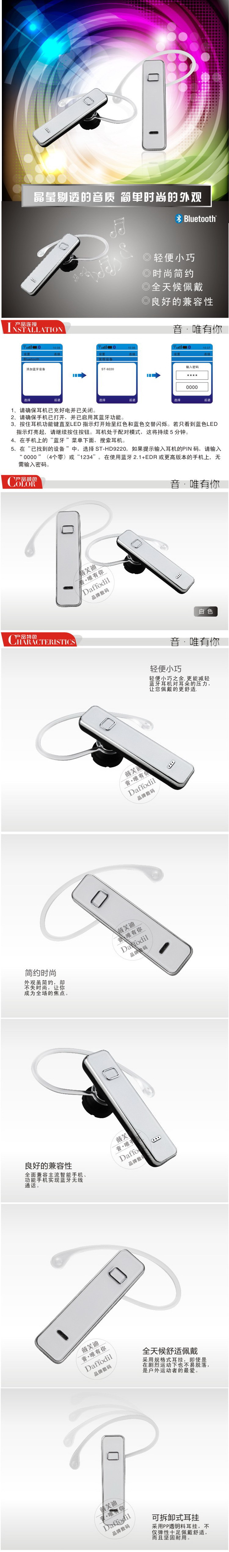 新款超薄白色蓝牙耳机一拖托二厂家生产批发 耳挂式蓝牙耳机