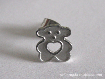 不锈钢饰品 钢色爱心小熊磨砂耳钉 厂家直销