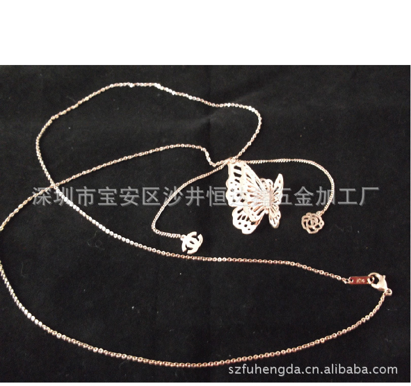 库存蝴蝶钛钢毛衣链 不锈钢饰品批发厂家 韩式项链 玫瑰金