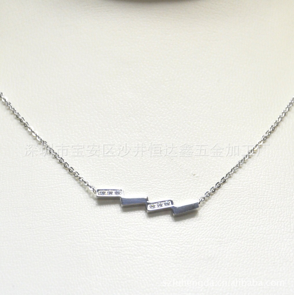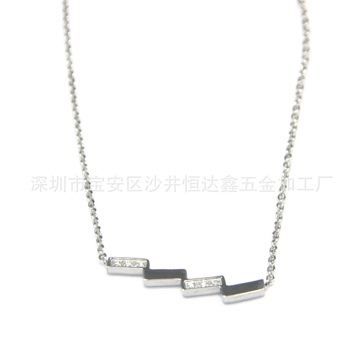 钛钢项链 不锈钢饰品批发 饰品厂家 韩式项链 小方条镶钻项链