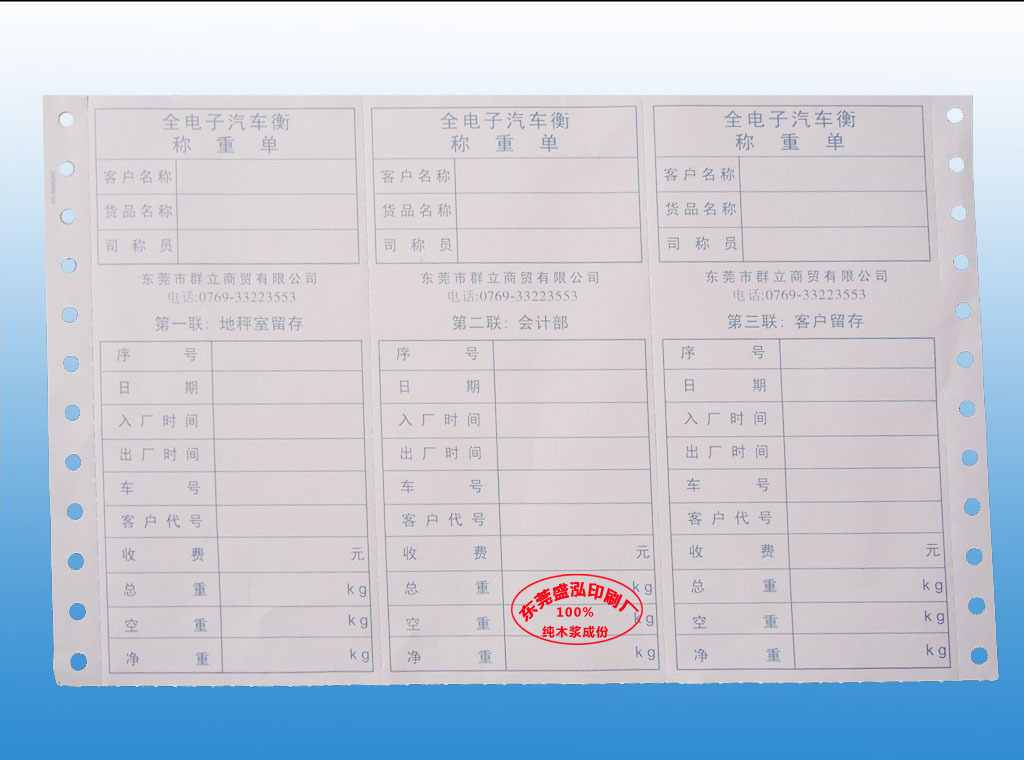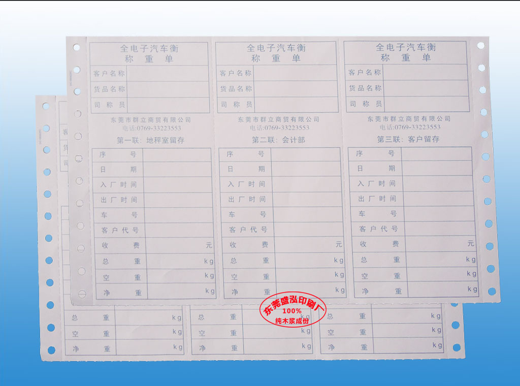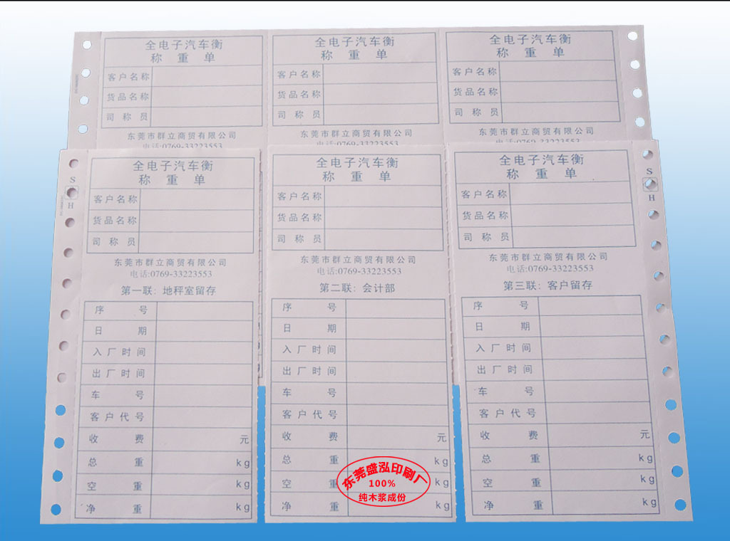 诚信质优 群立全电子称重单印刷 241X152 80g双胶纸