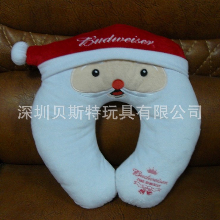 毛绒玩具厂订做 新奇特礼品 百威啤酒圣诞节礼品圣诞老人U型颈枕