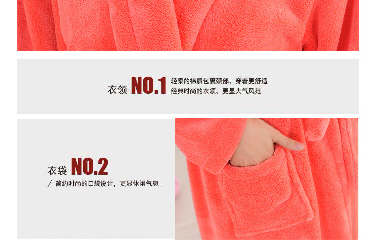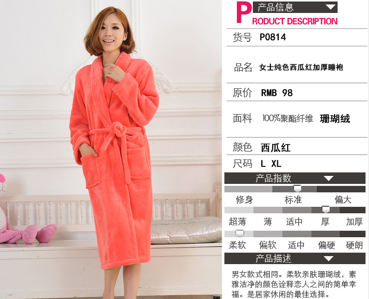 热卖女士睡袍 西瓜红色 珊瑚绒加厚浴袍 高品质睡衣 居家自用