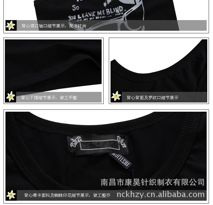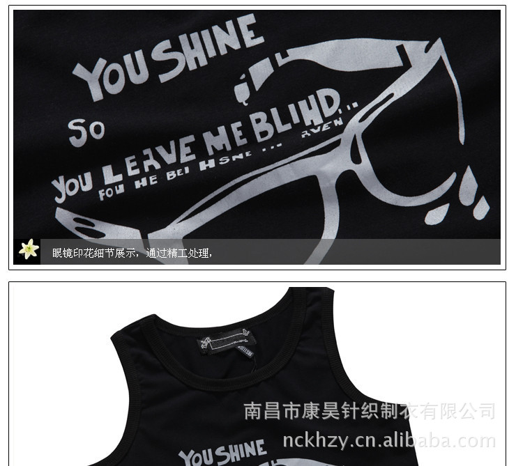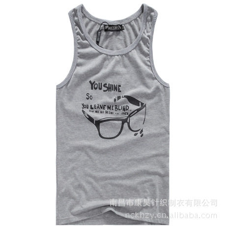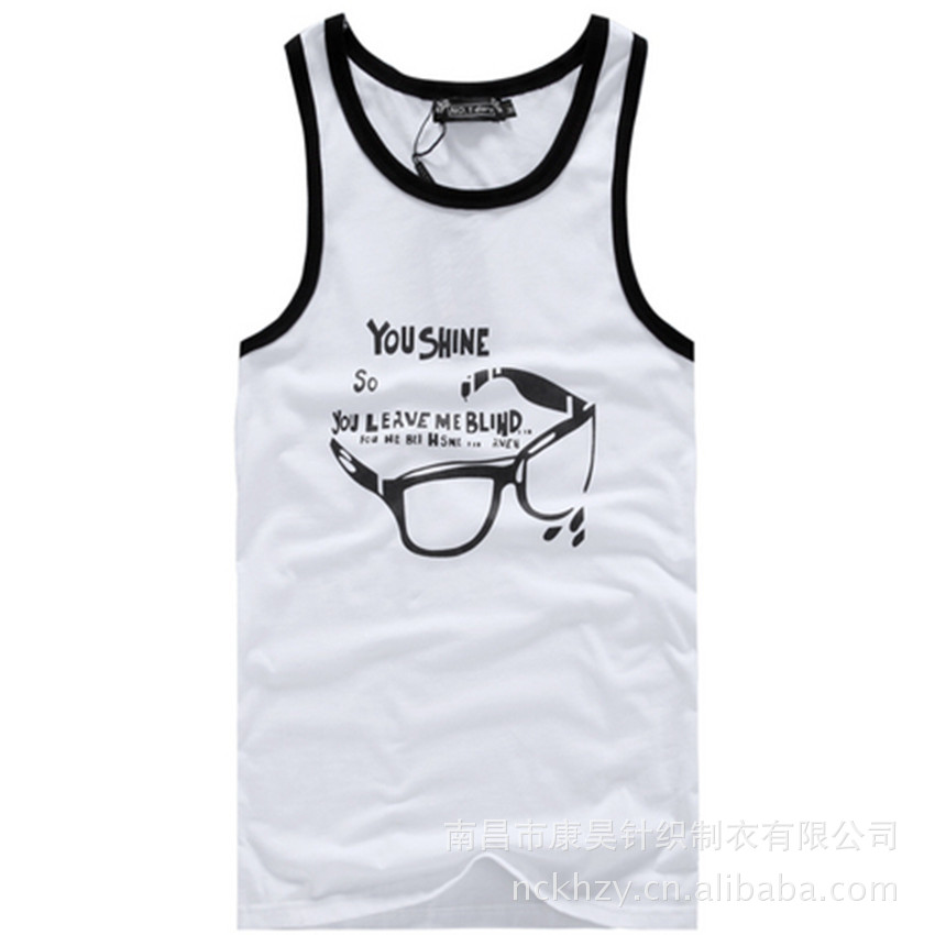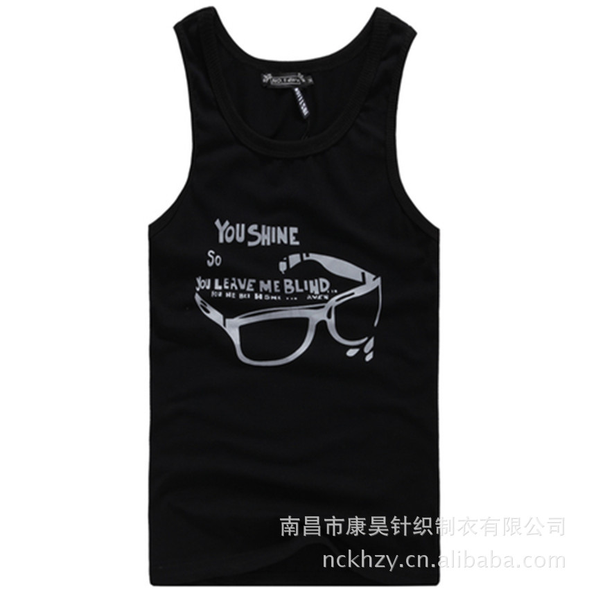 夏装新款 韩版眼镜框印花背心 男士紧身背心 男装运动汗 背心