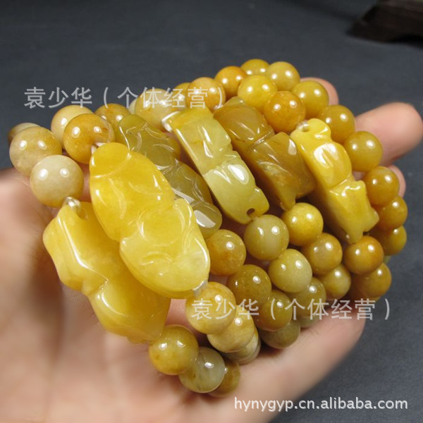 黄龙玉貔貅手链 黄玉手链 B料 可划玻璃 10MM