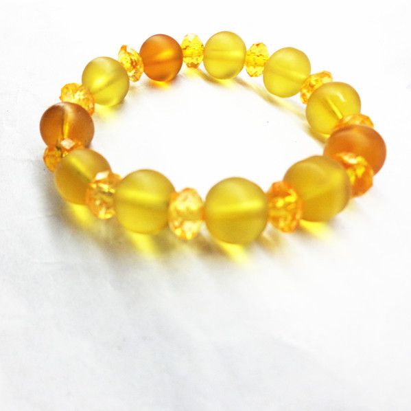 时尚水晶手链批发 黄色水晶/琉璃 10MM 磨砂玻璃珠手链