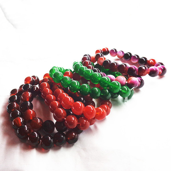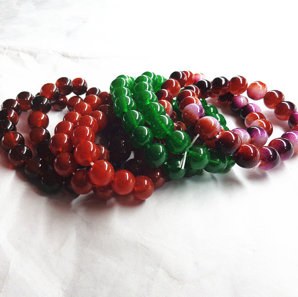 仿玛瑙手链批发 10MM 玻璃珠 仿玉手链 时尚手链 多款颜色