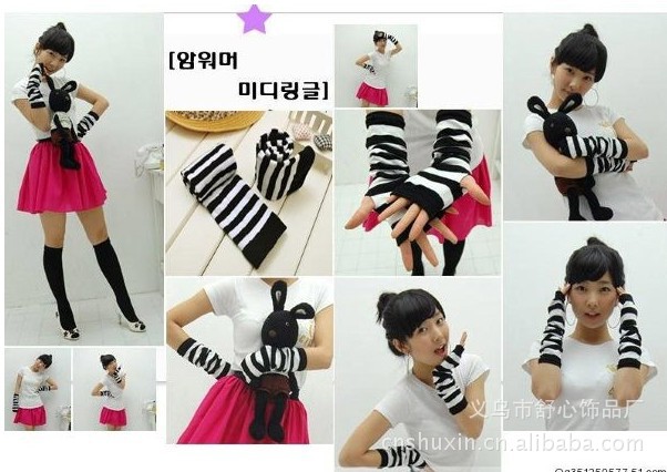 韩版热卖手套 时尚黑白相间斑马纹手腕套 手套 腕套Y7093-23