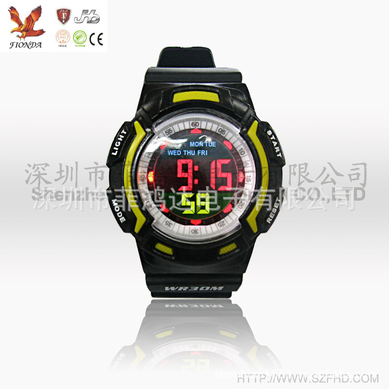 专业手表厂家供应塑胶男士电子运动手表 彩屏显示