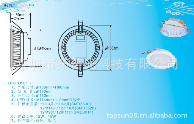 供应开孔150mm筒灯外壳 高品质筒灯套件