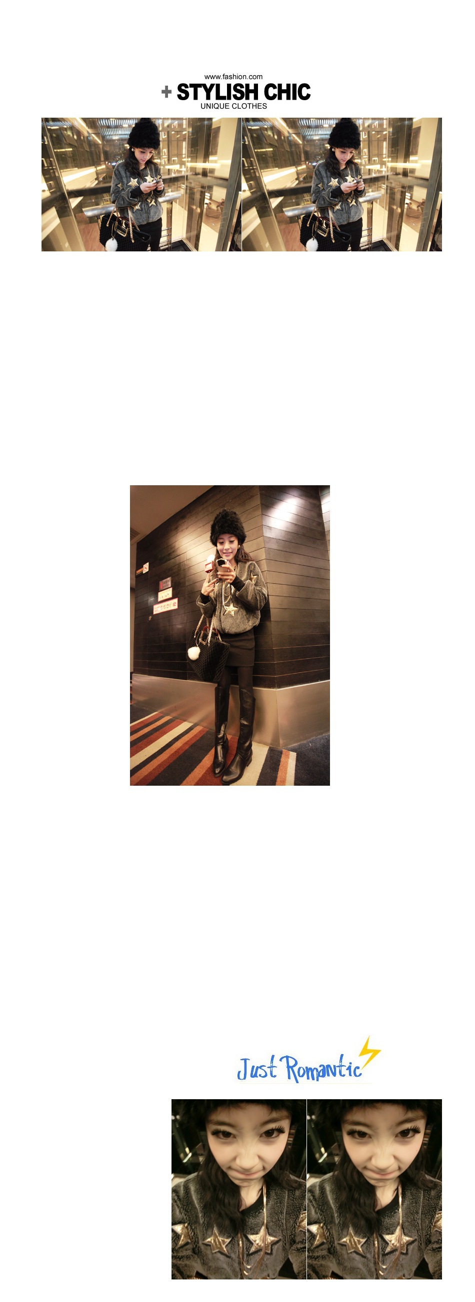 韩版女装冬装宽松休闲星星贴布毛茸茸卫衣拼接连衣裙DE10190