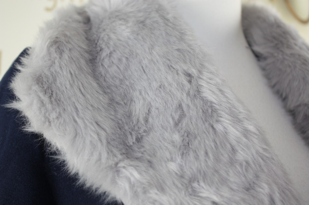 批发 韩国女装冬装 气质毛毛大翻领双排扣系带毛呢大衣外套796