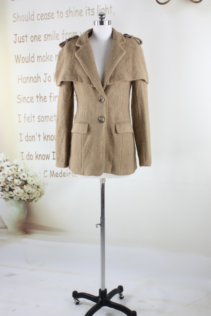 批发 韩版女装斗篷式披肩小口袋单排扣修身毛呢大衣外套811