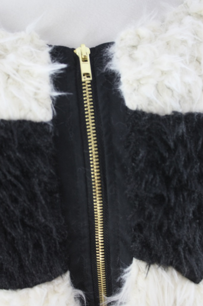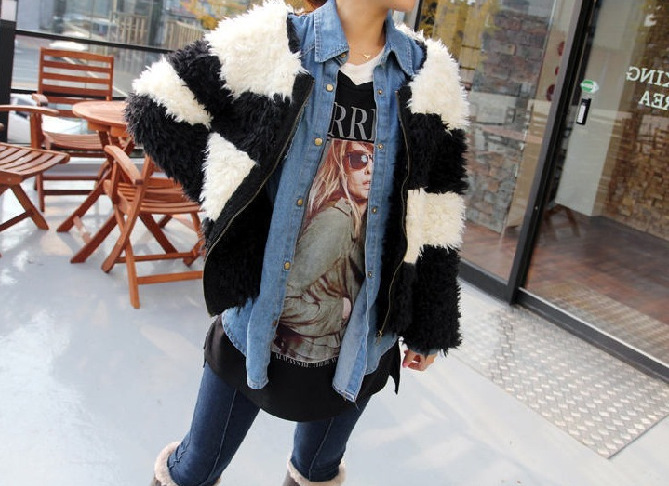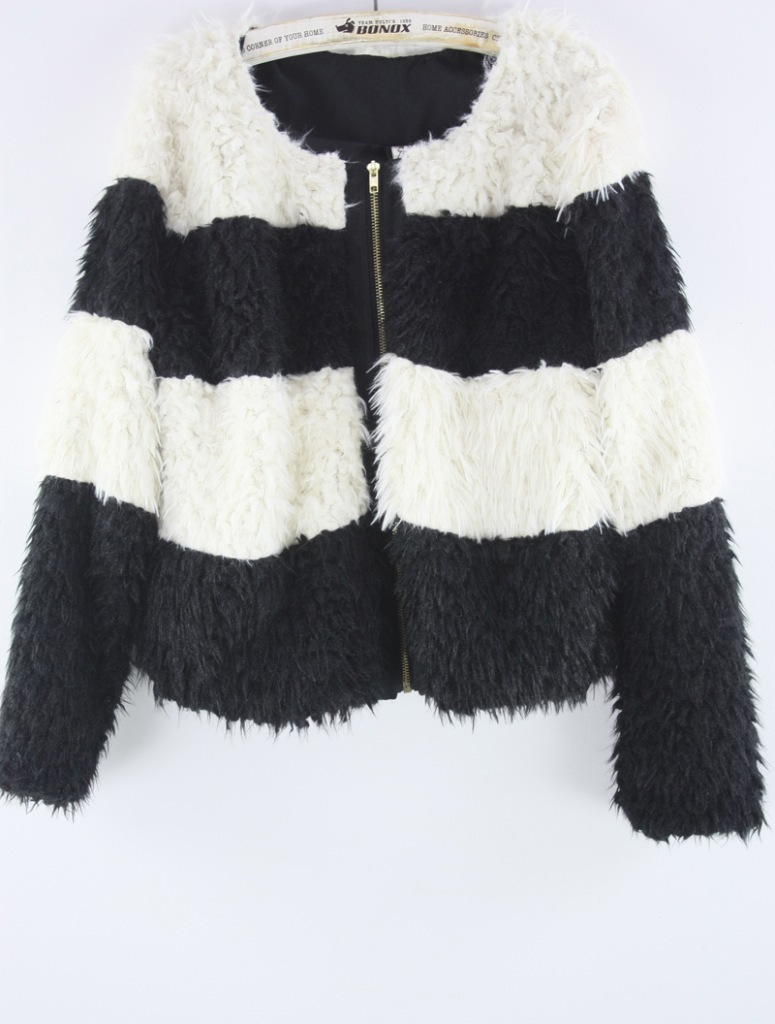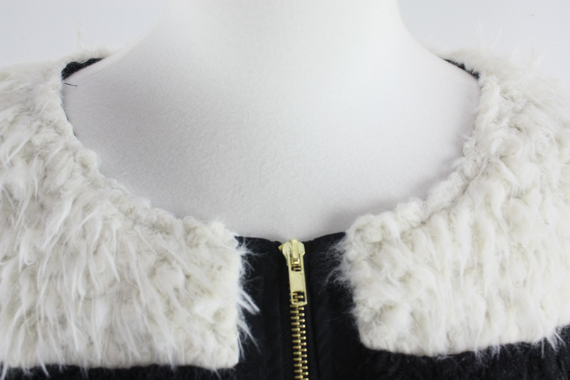 批发直销 韩国女装冬装新款熊猫黑白拼色毛毛拉链大衣外套AE178