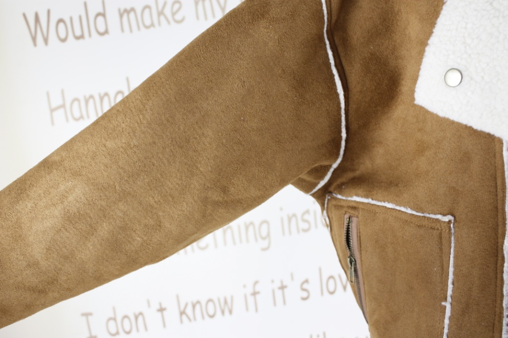 包邮活动韩国冬款复古飞行员仿麂皮羊羔绒翻领拼接帅气外套DE1010