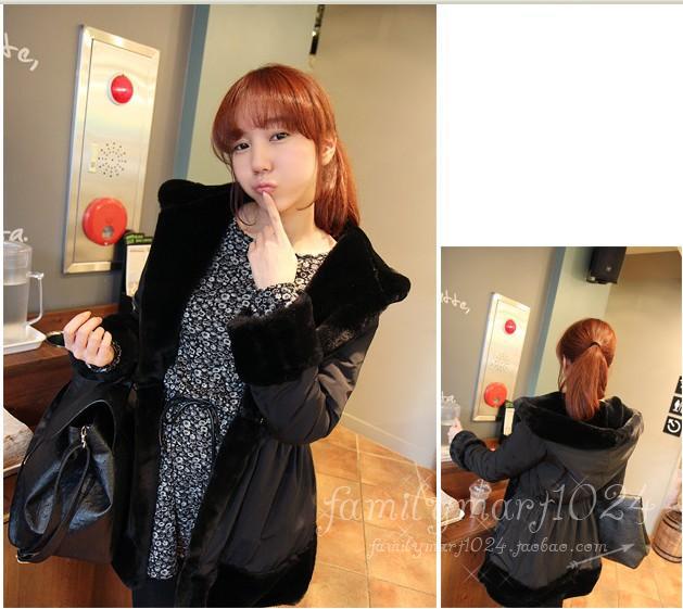 韩国代购同款冬季新款毛绒绒两面穿大帽子收腰棉服外套DE998