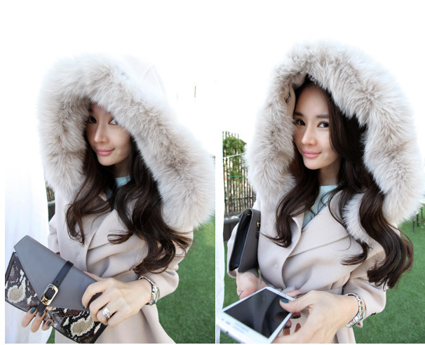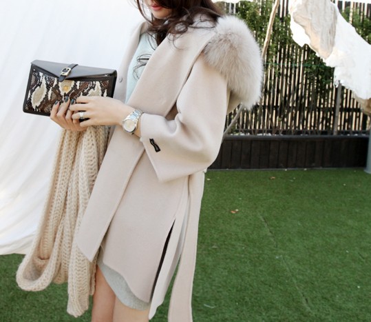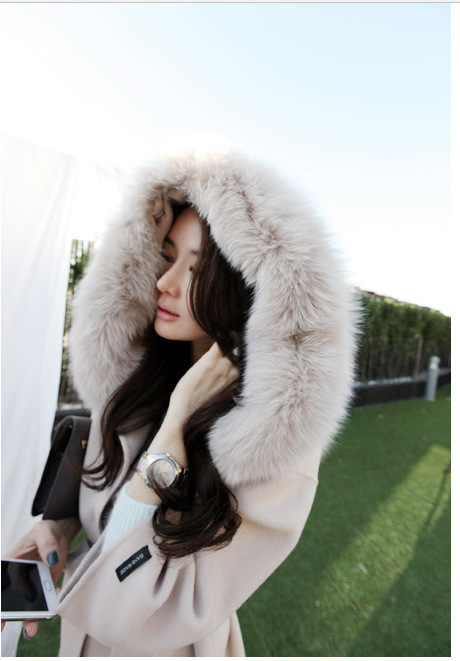韩国女装冬装新款大毛领蝴蝶结系带毛呢子大衣斗篷外套ME961