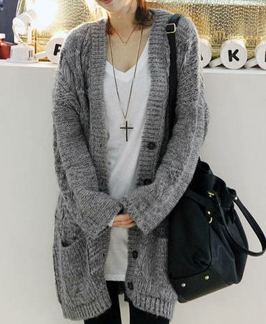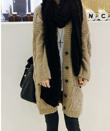 广州女装韩国新冬款纯色长款破洞拉丝宽松毛衣大衣外套AB4647
